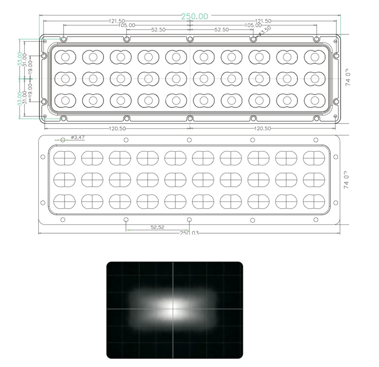 - 70x126 °, 140x70 °, 120x60 °, 90x126 °, 60x60 ° gibi daha küçük ışın açılarına ihtiyaç duyan projeler için optik lensler mevcuttur.